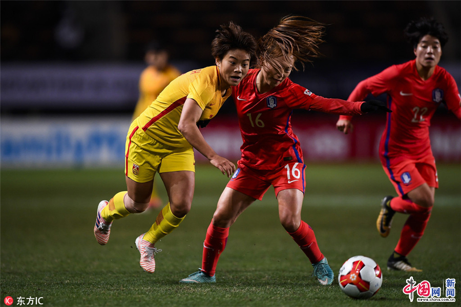 当地时间2017年12月15日,日本东京,2017东亚杯,中国女足3-1韩国女足。顾岩/东方IC