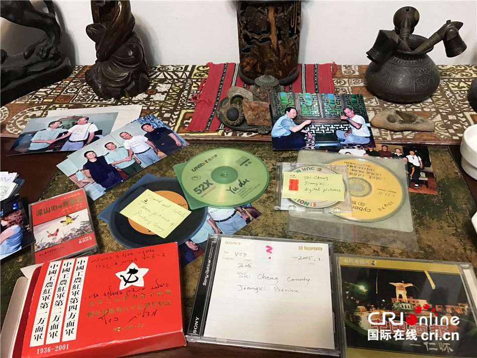 武大伟重走长征路留下的照片和资料。(摄影孙伶俐)
