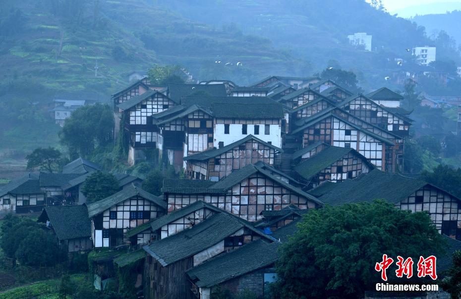 12月19日,晨曦中的四川合江福宝镇。四川泸州合江县福宝镇位于川渝黔交界处的大漕河畔,始建于元朝初年,保存较好的明清吊脚楼随山势起伏,错落有致,被誉为四川乡村民居的活化石。中新社记者 刘忠俊 摄