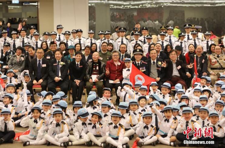 1月13日,香港升旗队总会“2018年幼儿队伍周年检阅礼”在香港举行。全国人大常委会委员范徐丽泰出席典礼并担任主礼嘉宾。此次检阅礼希望帮助在场幼儿队员及社会大众加深认识升旗礼仪,加强对国民身份的认同。 中新社记者 谢光磊 摄