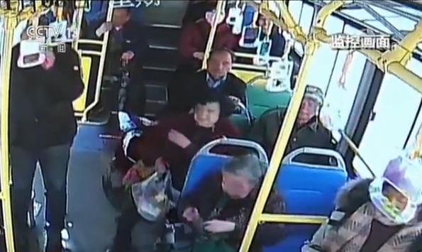 60路公交车司机苏建昆说,一位腿脚也不方便,她腿也抬不起来,所以就把她抱上来。