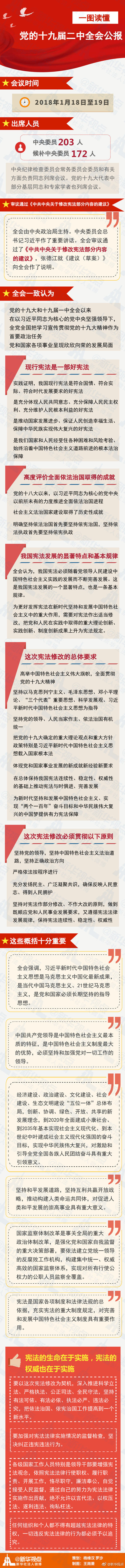 党的十九届二中全会公报新鲜出炉,公报有哪些重要内容?这次宪法修改的总体要求是什么?戳长图!