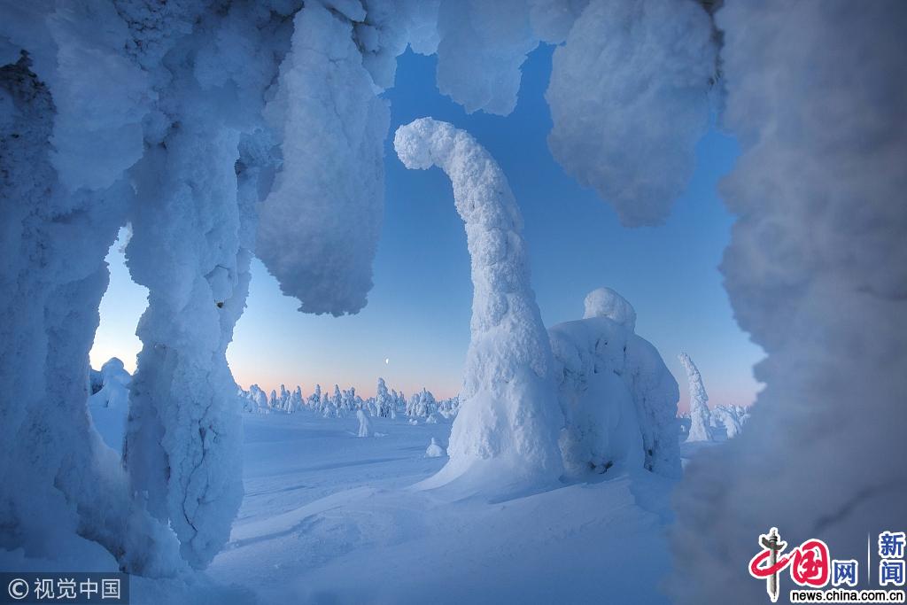 2018年1月24日讯(具体拍摄时间不详),摄影师Bazanov Andrew Sergeevich跋涉1000公里来到位于芬兰的里斯图里(Riisitunturi)国家公园,拍摄了一系列树木被大雪覆盖后的极致景观,这些奇异的照片乍一看像是外星上的场景,十分震撼。照片是大雪过后在北极圈附近拍摄的,树枝的蜿蜒被施加雪花的“魔法”,看起来像是火山爆发时被冻结的奇绝场景。那里气温低至零下40摄氏度,在极端严寒下,冰雪可以覆盖一切。Andrew Bazanov/Solent News/视觉中国