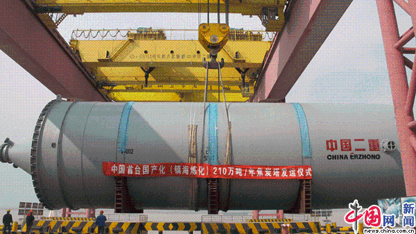 国内首台内直径达到Φ9800mm的炼化设备——镇海焦炭塔在镇江基地完工。图片来源:中国二重。