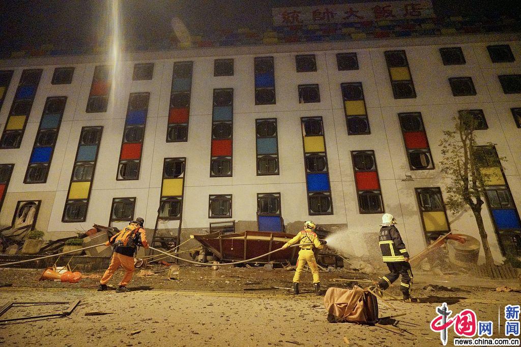 2018年2月7日,花莲,救援人员在地震废墟中搜救。6日深夜,花莲县附近海域(北纬24.13度、东经121.71度)发生6.5级地震,震源深度11.0公里。