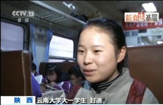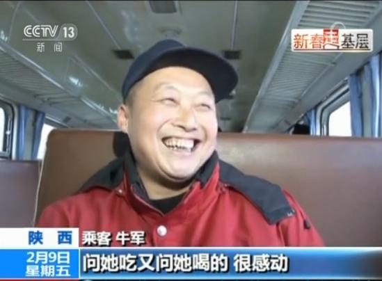 乘客 牛军:列车员对这些同学(学生)都好得很,我们闺女回家就跟我说,我在车上碰到列车员叔叔,对我真的好。问她吃又问她喝的,很感动。