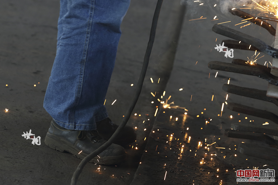 温素霞穿着的裤子和鞋都有防护功能,防止四溅的火花灼伤皮肤。