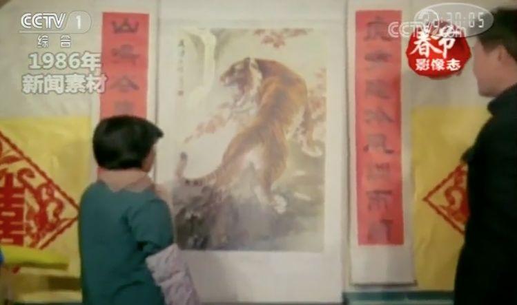 请一张年画回家过年,也是我们中国人过年必不可少的仪式感。这是86年的陕北,这家人,妈妈带着弟弟剪窗花,爸爸带着姐姐贴春联,大红的灯笼一挂,真的是年味十足。更有意思的是,传统的年画也推陈出新,他们没有贴上传统的福字,而是在家里的墙上挂了一幅国画,虎虎生威,别有一番年味儿。