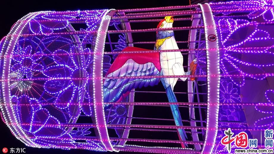 2018年2月15日春节除夕夜,陕西西安, 大红灯笼闹古城,千年古城墙上迎来了高科技精美灯展,新视觉的效果传达出浓浓的年味,吸引力了全国各地的游客前来观赏游玩。韩建超/东方IC
