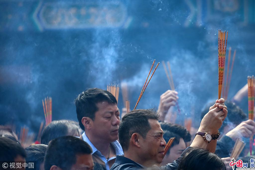 2018年2月17日,香港,民众在黄大仙庙上香祈福庆祝春节。