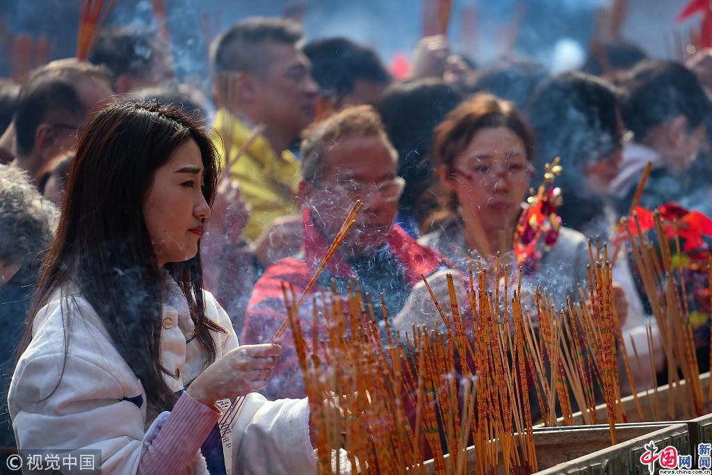 2018年2月17日,香港,民众在黄大仙庙上香祈福庆祝春节。