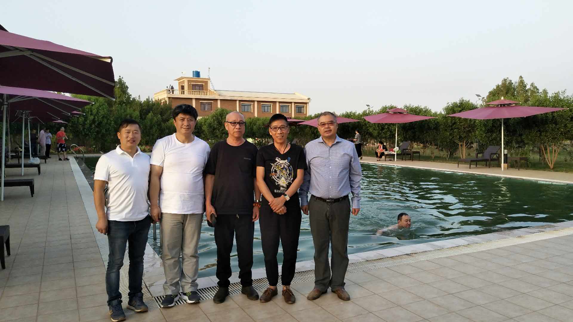 裴永宏(右起第 1 位)与友人在 南通建工集团苏丹分公司投资的尼罗休闲庄园