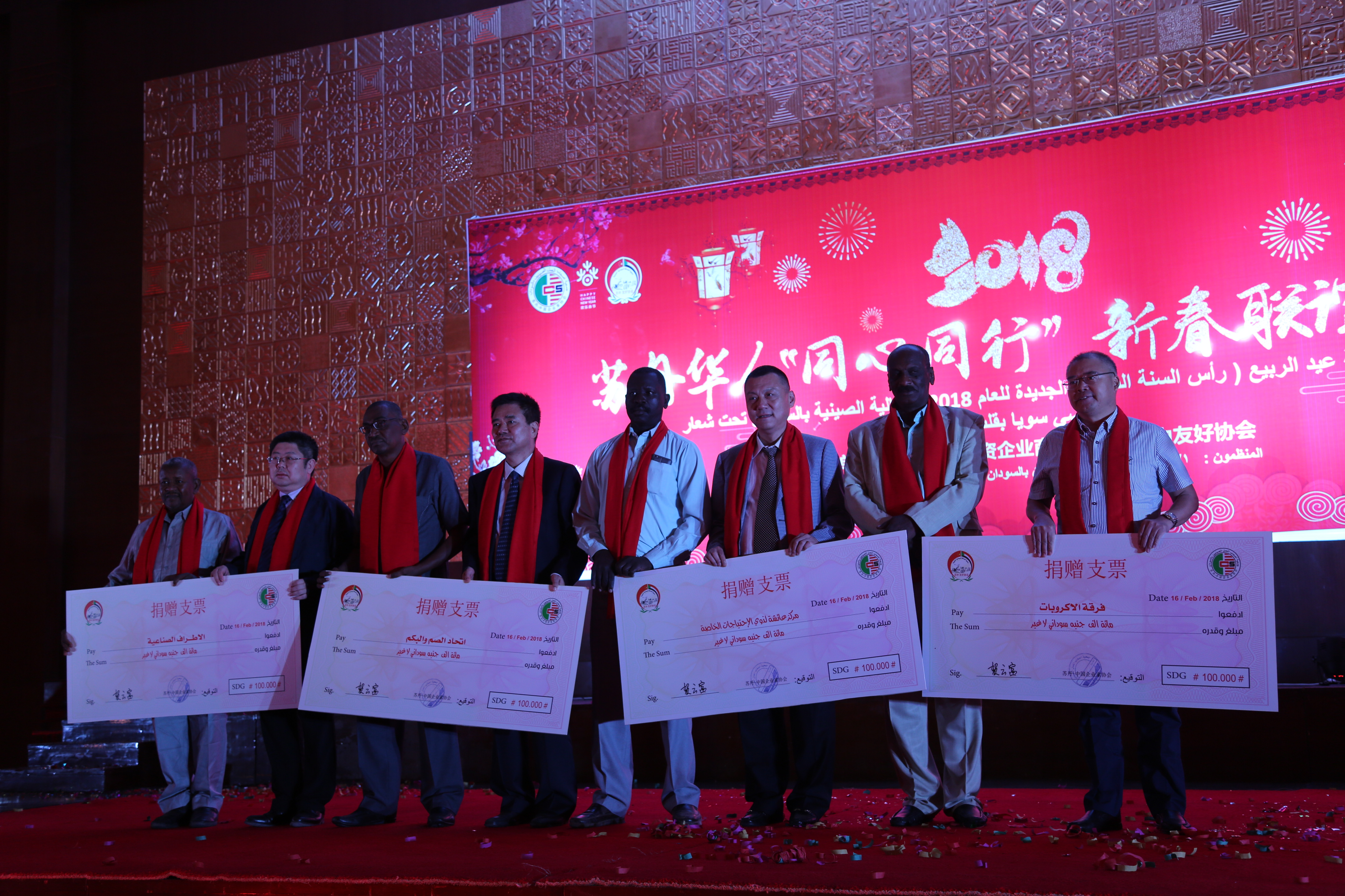 裴永宏(右起第 1 位)代表企业向苏丹公益团体捐款