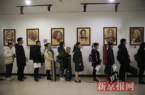 陪孩子来参加艺考的家长。新京报记者王贵彬 实习生陈婉婷 摄