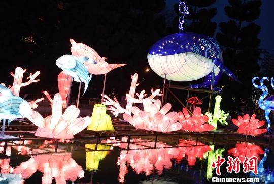 灯会上一组长近40米的灯组《海底世界》,由五颜六色的鲸鱼、海豚、八爪鱼等造型花灯组成。刘可耕 摄
