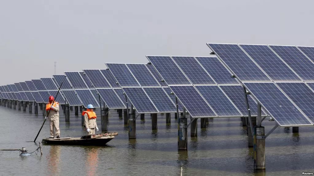 ▲江苏省连云港一座池塘内的太阳能电池板(路透社)