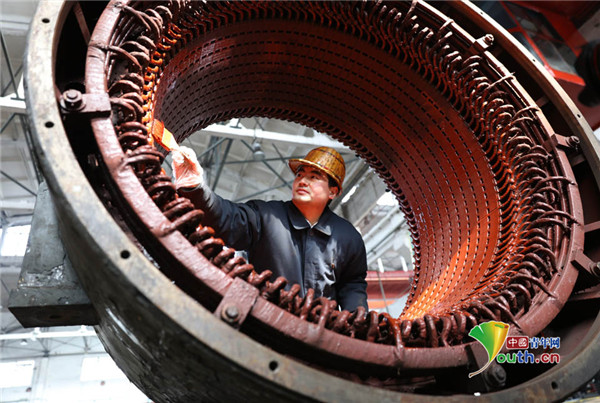 为主发电机进行刷漆。中国青年网通讯员 王智明摄