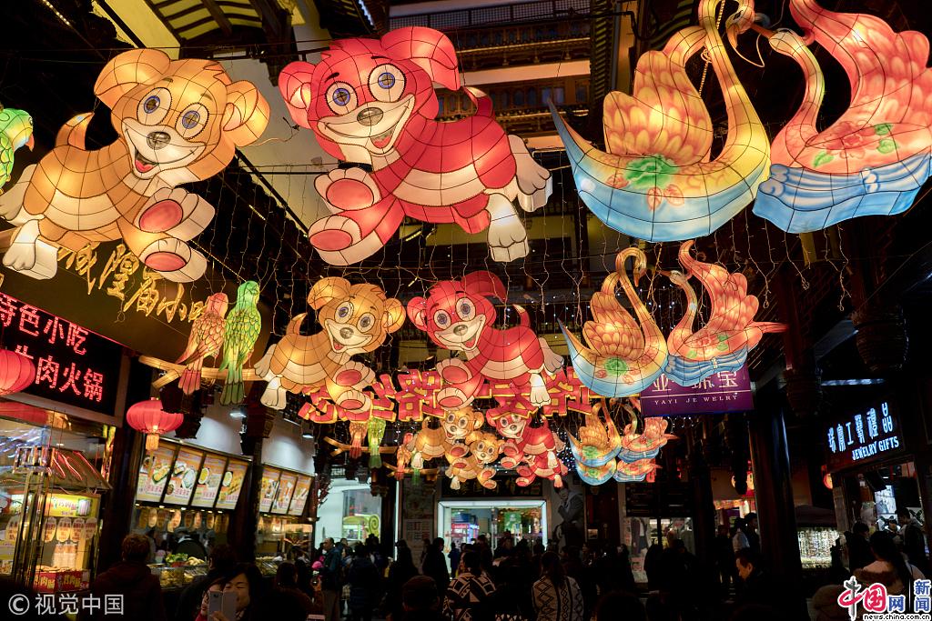 2018年2月24日,上海,上海豫园狗年新春民俗艺术灯会流光溢彩,年味十足,吸引众多市民和游客观灯游园,感受喜庆的节日气氛。视觉中国