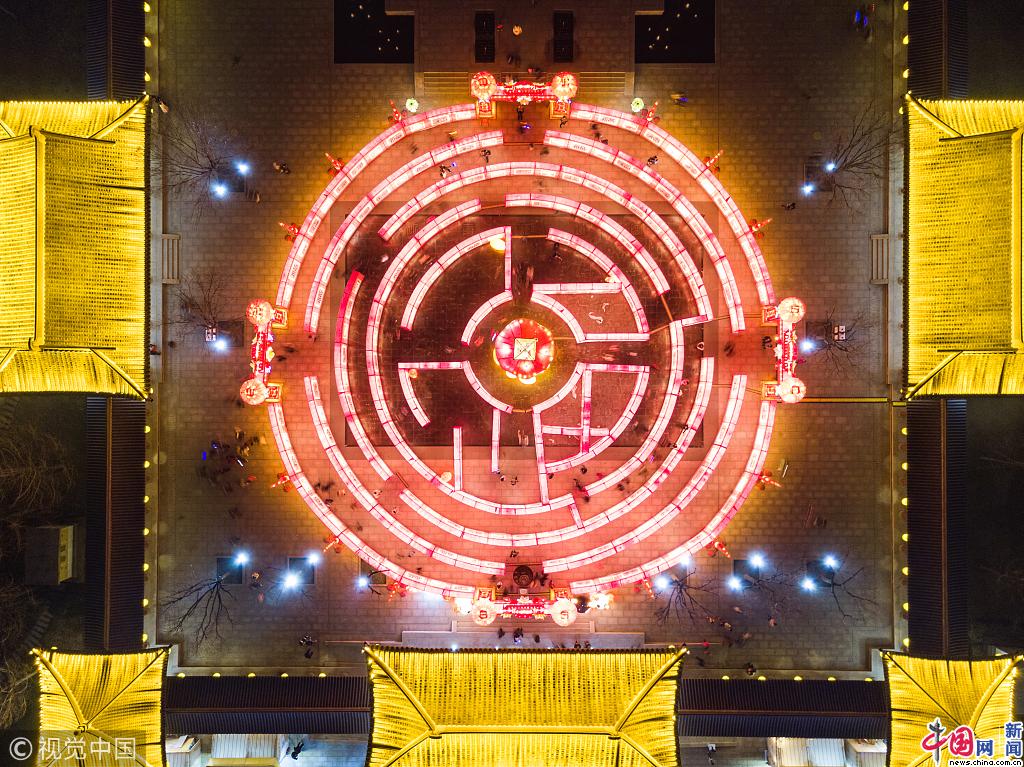 2018年2月25日,西安,唐芙蓉园紫云楼前的巨型迷宫灯阵,游人穿梭其中,感受大唐上元灯节魅力。视觉中国