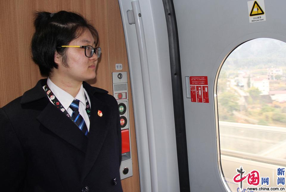 春运期间,高铁上没有空余座位,通勤路上的她经常是站在车厢连接处,也有旅客会把她当成列车员,提出一些乘车相关的问题,她总会耐心解答。