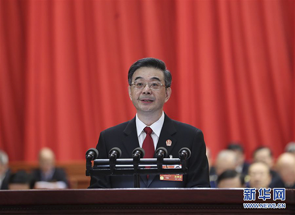 3月9日,十三届全国人大一次会议在北京人民大会堂举行第二次全体会议。周强作《最高人民法院工作报告》。 新华社记者 王晔 摄