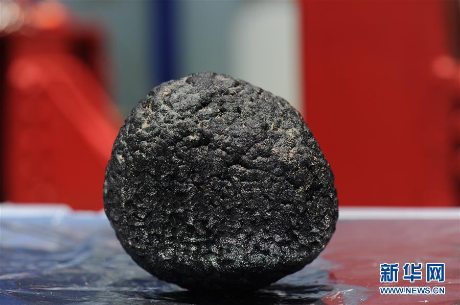 在麦哲伦海山采集的富钴结壳样品(4月8日摄)。深海大洋中的海山又被称为“海底花园”。近日,中国“科学”号科考船上的“发现”号深海机器人多次探访西太平洋的麦哲伦海山,并“现场直播”了壮美“山景”。新华社记者 张建松 摄