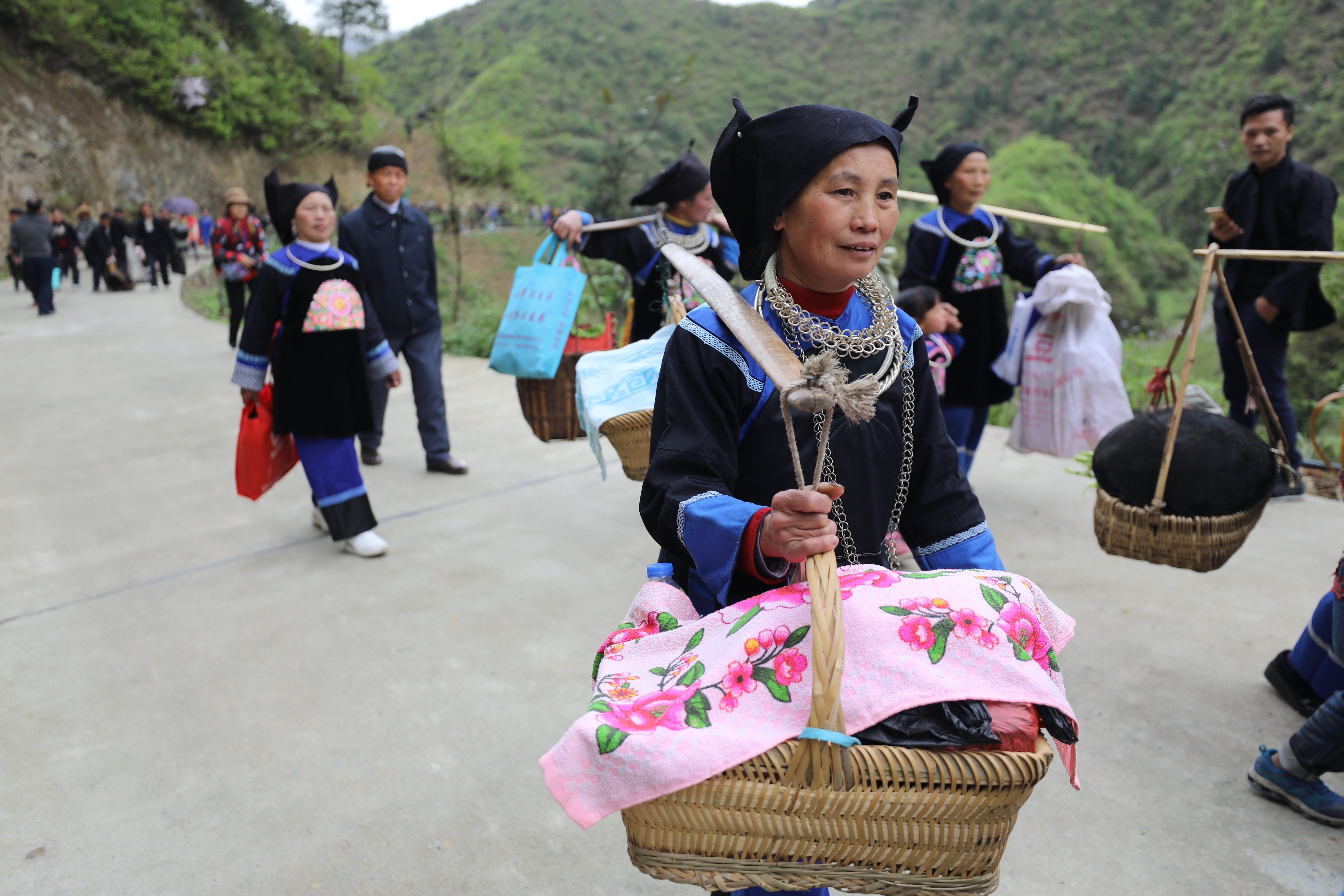 贵州剑河苗族祭祖节后 绵延一公里的山路野炊