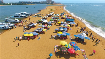 “五一”小长假临近,海南省的各景点旅游大幅升温。图为游人在海南博鳌玉带滩旅游。新华社发 蒙钟德 摄