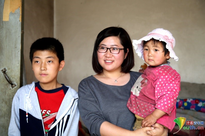 刘晓卿在家访过程中抱起了学生的妹妹。中国青年网记者孙钊 摄