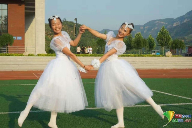 刘晓卿的朋友圈里有舞蹈班的合影,女孩们身穿白色的芭蕾舞服装,坐在北冶操场青青的草坪上,远处是青山和白云,明亮的阳光下女孩们笑容灿烂。舞蹈使平时素面朝天害羞内敛的女孩们收获了从未想象过的成就感,变得更加自信开朗。