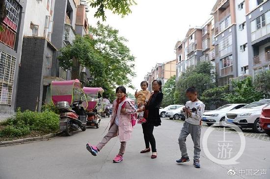 “我现在平常在家就是带他们,一个九岁、一个八岁、这个两岁多。九岁的是外孙,八岁的是涪蓉。”