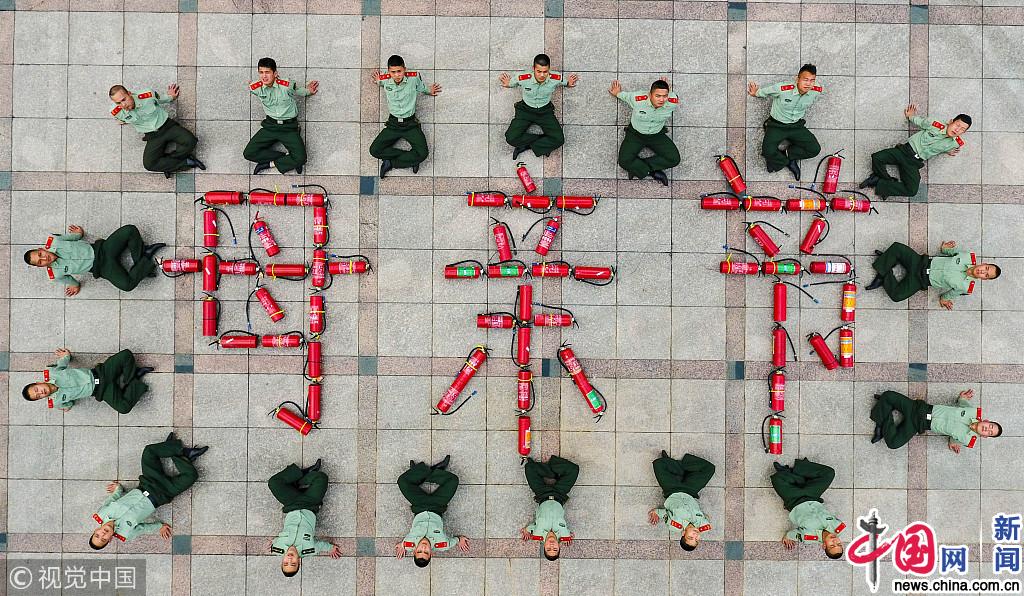 消防战士用灭火器壳拼出“母亲节” 为母亲送祝福
