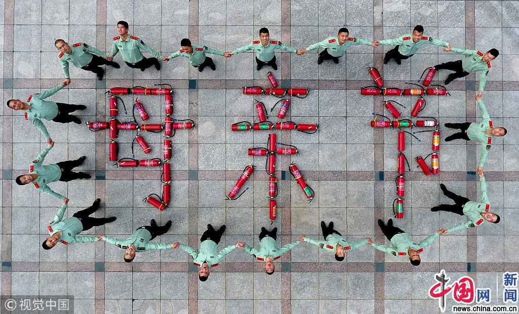 消防战士用灭火器壳拼出“母亲节” 为母亲送祝福