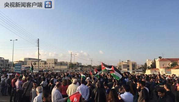 当地时间5月14日,在美国正式将驻以使馆迁至耶路撒冷之前和之后,数以百计的约旦民众聚集在美国驻约旦使馆前示威。示威一直从下午4点持续到晚上8点多,持续到了数小时。