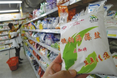 2014年,青岛一超市销售的未加碘低钠海藻盐。资料图片/视觉中国