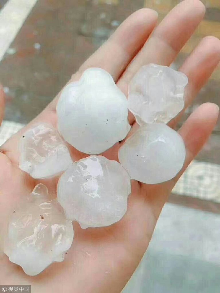 陕西商洛:商南遭遇冰雹袭击 最大冰雹直径8cm左右