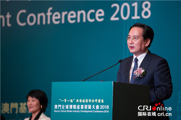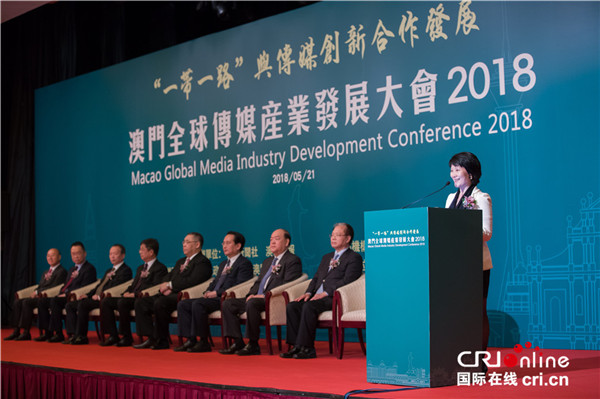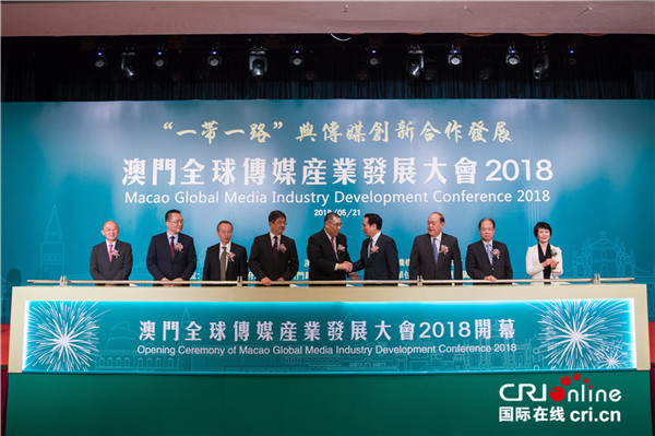 国际在线消息(记者 沈湜):2018年5月21日上午,以“一带一路”与传媒创新合作发展为主题的“澳门全球传媒产业发展大会2018”在澳门揭幕。来自澳门、中国内地和海外传媒、学界、产业界嘉宾二百余人汇集一堂,聚焦热点,深入探讨传媒技术、内容和产业创新、发展诸话题,携手促进传媒产业的合作与发展。