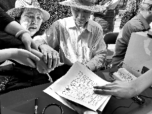 1937年出生的李光彩早年当兵,1959年与老伴儿刘玉华在河北昌黎结婚,“当时给的就是一张纸,连照片都没有。搬了一次家,就找不到了。明年我们就结婚60周年了,却有40多年手里没有结婚证。”再领证的刘玉华老人非常高兴,就像是完成了一项任务。71岁的鲁新华也带着老伴姚开秀来补办结婚证,69岁的姚开秀身体不是很好,坐轮椅,按手印也使不上劲,还是老爷子拉着老太太的手按上的。“亏得是来社区办证,否则老太太的身体受不了。”有知情人向北京晨报记者说道。