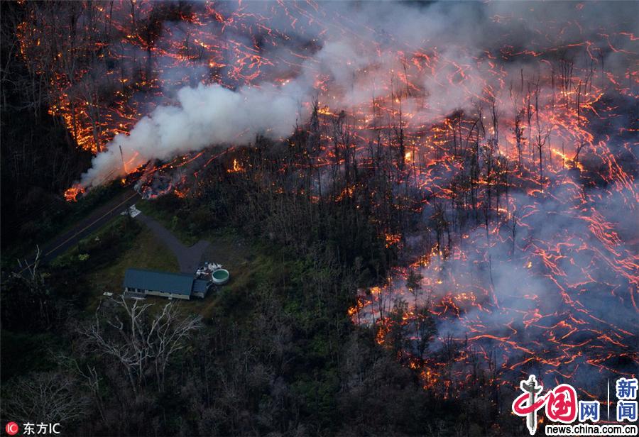 夏威夷基拉韦厄火山持续喷发 岩浆涌向住宅区画面震撼