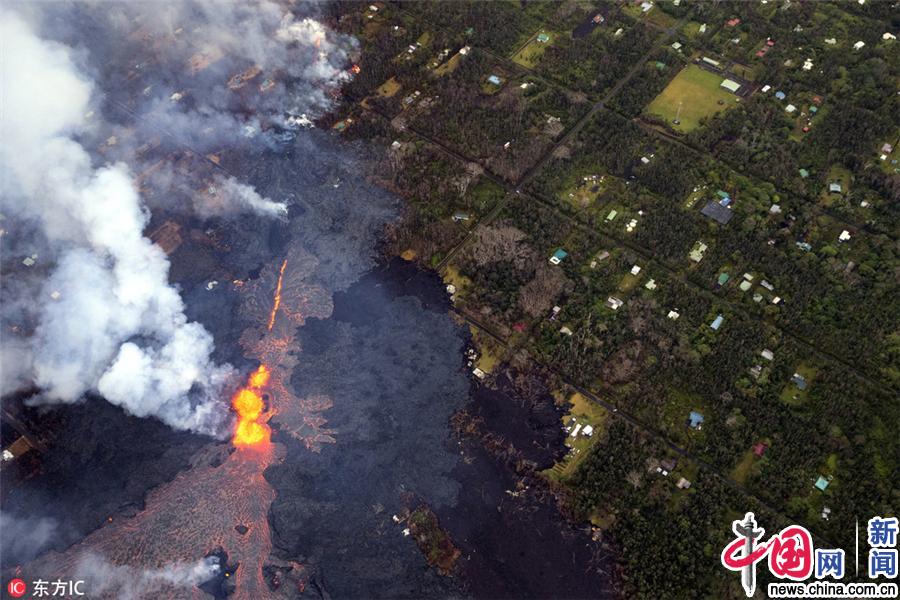夏威夷基拉韦厄火山持续喷发 岩浆涌向住宅区画面震撼
