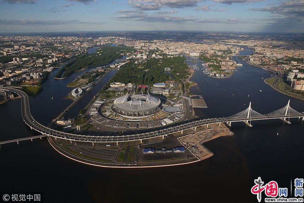 2018年5月30日,俄罗斯圣彼得堡,2018俄罗斯世界杯前瞻,高空俯瞰圣彼得堡,大气滂沱一望无际。TASS/视觉中国