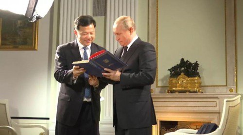 普京总统表示感谢,回赠慎海雄一本画册《莫斯科》,并在扉页上签名。