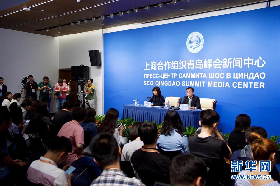 6月8日,中国文化和旅游部旅游促进与国际合作司司长薛亚平(右)在上海合作组织青岛峰会新闻中心举行新闻发布会,介绍上合框架下文化和旅游领域合作情况。新华社记者姜克红摄