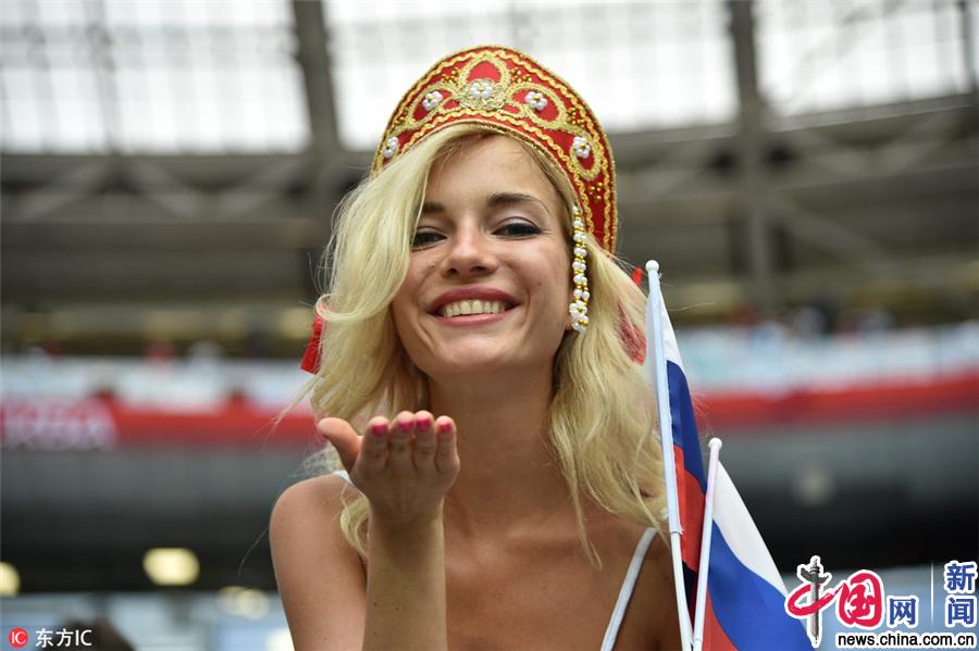 世界杯揭幕战俄罗斯狂胜 美女球迷热舞送飞吻