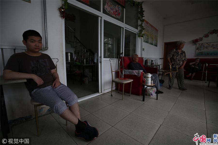他的时间仿佛凝固在这个养老公寓里,如果幸运,他也许会在这里陪着一茬茬老人终老。正青春的广振,夹在一群耄耋老人之中,特别突兀显眼,他是最年轻的养老者。