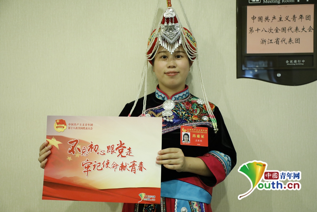 团十八大代表兰琴琴点赞“不忘初心跟党走 牢记使命献青春”。中国青年网记者 张瑞宇 摄