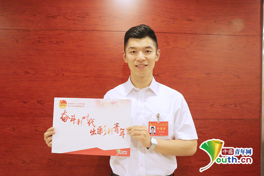 团十八大代表蔡志鹏点赞“奋斗新时代 出彩新青年”。中国青年网记者张群 摄