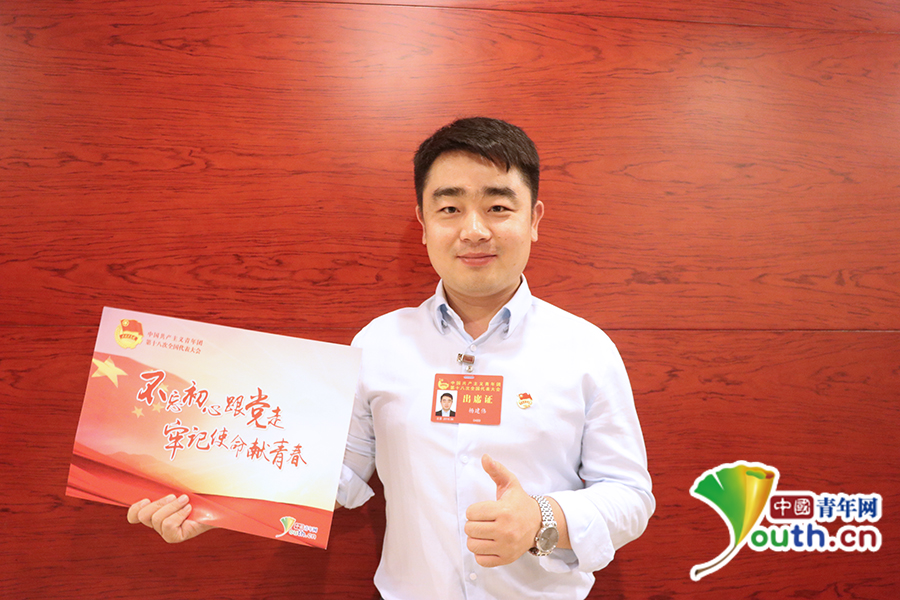 团十八大代表杨建伟点赞“不忘初心跟党走 牢记使命献青春”。中国青年网记者 张群 摄