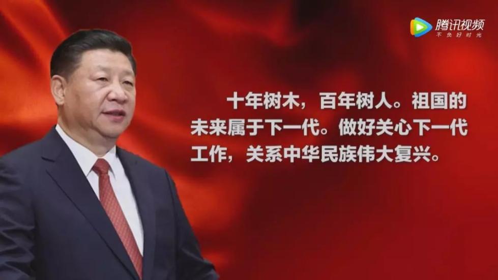 习近平总书记深刻指出,十年树木,百年树人。祖国的未来属于下一代。做好关心下一代工作,关系中华民族伟大复兴。 (摘自习近平总书记在纪念中国关心下一代工作委员会成立25周年暨全国关心下一代工作表彰大会上的发言)。