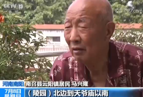河南省南阳市南召县云阳镇居民 张明旭:按老人说的,陵园东西(距离)大概有3、4百米左右,南北有800米到1000米左右。